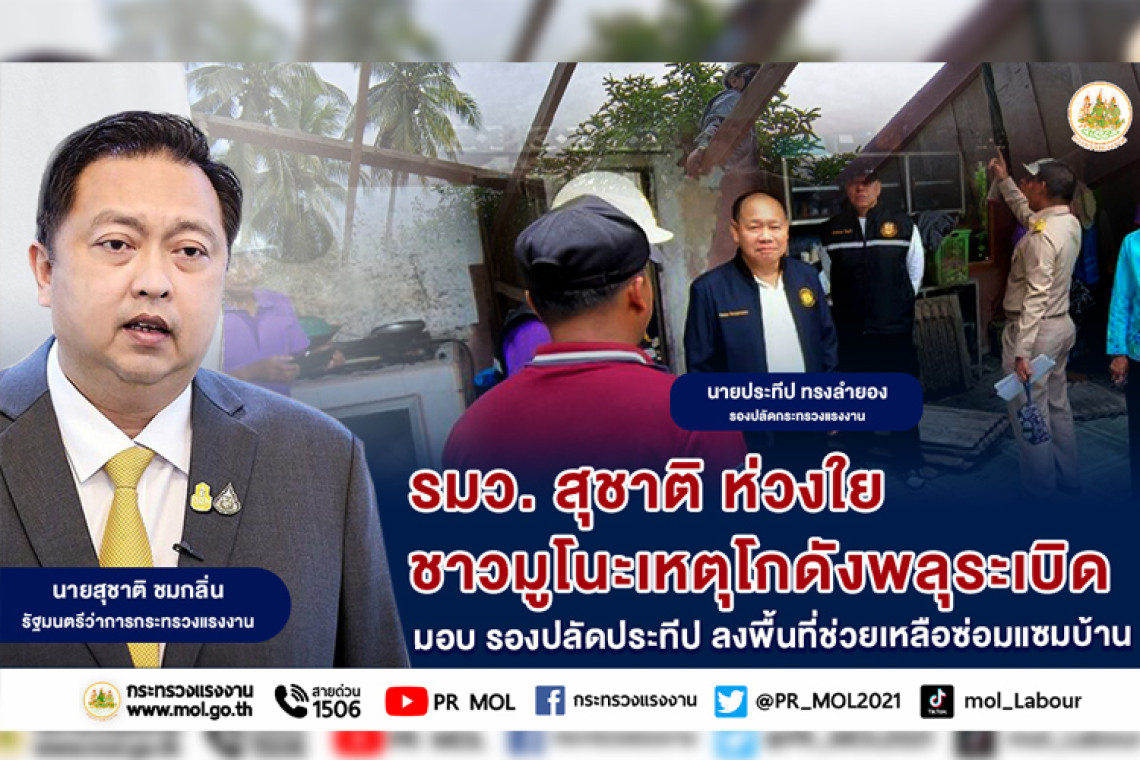 วันที่ 4 สิงหาคม 2566 นายสุชาติ ชมกลิ่น รัฐมนตรีว่าการกระทรวงแรงงาน มอบหมายให้ นายประทีป ทรงลำยอง รองปลัดกระทรวงแรงงาน ลงพื้นที่จังหวัดนราธิวาส เยี่ยมให้กำลังใจทีมช่างของสถาบันพัฒนาฝีมือแรงงาน 25 นราธิวาส บัณฑิตแรงงานจังหวัดนราธิวาส และผู้ต้องขังจากเรือนจำจังหวัดนราธิวาส ที่ได้ร่วมกันช่วยเหลือซ่อมแซมบ้านพักอาศัยของประชาชนชาวมูโนะที่ได้รับความเสียหายจากเหตุการณ์โกดังเก็บดอกไม้เพลิงระเบิด จนทำให้มีผู้เสียชีวิต จำนวน 11 คน และผู้ได้รับบาดเจ็บ จำนวน 389 คน อาคารบ้านเรือนและทรัพย์สินได้รับความเสียหายจำนวนมาก ณ พื้นที่ตลาดมูโนะ อำเภอสุไหงโก-ลก จังหวัดนราธิวาส โดยมี หัวหน้าส่วนราชการและเจ้าหน้าที่หน่วยงานในสังกัดกระทรวงแรงงานจังหวัดนราธิวาส ร่วมลงพื้นที่ด้วย