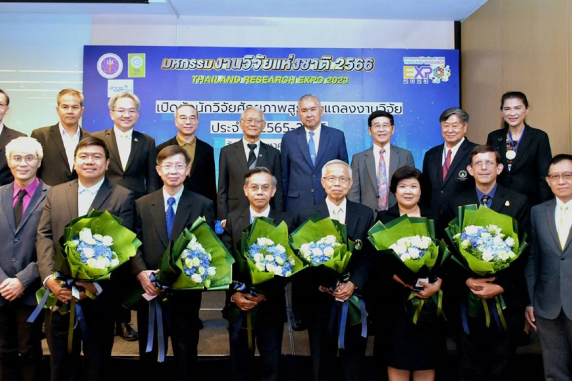 เมื่อวันที่ 8 ส.ค.66 วันที่สองของ “มหกรรมงานวิจัยแห่งชาติ 2566 : Thailand Research Expo 2023” ภายใต้แนวคิด “ขับเคลื่อนงานวิจัย สู่เศรษฐกิจยุคใหม่ สร้างไทยยั่งยืน” ณ ห้อง Lotus Suite 7 ชั้น 22 บางกอกคอนเวนชันเซ็นเตอร์ เซ็นทรัลเวิลด์ กรุงเทพฯ สำนักงานการวิจัยแห่งชาติ (วช.) กระทรวงการอุดมศึกษา วิทยาศาสตร์ วิจัยและนวัตกรรม และสำนักงานพัฒนาวิทยาศาสตร์และเทคโนโลยีแห่งชาติ (สวทช.) ร่วมจัด “งานเปิดตัวนักวิจัยศักยภาพสูงและแถลงงานวิจัย ประจำปี 2565-2566” โดย ดร.วิภารัตน์ ดีอ่อง ผู้อำนวยการสำนักงานการวิจัยแห่งชาติ มอบหมายให้ นายสมปรารถนา สุขทวี รองผู้อำนวยการสำนักงานการวิจัยแห่งชาติ (วช.) ร่วมงาน ศาสตราจารย์ ดร.ชูกิจ ลิมปิจำนงค์ ผู้อำนวยการสำนักงานพัฒนาวิทยาศาสตร์และเทคโนโลยีแห่งชาติ (สวทช.) ศาสตราจารย์ ดร.ยงยุทธ ยุทธวงศ์ อดีตรองนายกรัฐมนตรี และประธานกรรมการทุนส่งเสริมกลุ่มวิจัยศักยภาพสูง และ ศาสตราจารย์กิตติคุณ นพ.สุทธิพร จิตต์มิตรภาพ ประธานกรรมการทุนส่งเสริมกลุ่มวิจัยศักยภาพสูง และประธานกรรมการส่งเสริมวิทยาศาสตร์ วิจัย และนวัตกรรม กองทุนส่งเสริม ววน. ร่วมแถลงข่าวเปิดตัว 6 นักวิจัยศักยภาพสูง และแถลงความก้าวหน้าผลงานและประโยชน์ที่ได้รับจากงานวิจัย ประจำปี 2565-2566 พร้อมด้วยคณะกรรมการทุนส่งเสริมกลุ่มวิจัยศักยภาพสูง ผู้บริหาร วช. ผู้บริหาร สวทช. ผู้บริหารต้นสังกัดนักวิจัย ผู้ทรงคุณวุฒิ และแขกผู้มีเกียรติ เข้าร่วมงาน