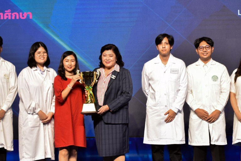 -ระดับปริญญาตรี กลุ่มที่ 1 ด้านการเกษตรและอุตสาหกรรมการเกษตร ระดับดีเด่น ได้แก่ ผลงานวิจัยเรื่อง “ไบโอ-คิล ผลิตภัณฑ์ป้องกันกำจัดโรคพืช