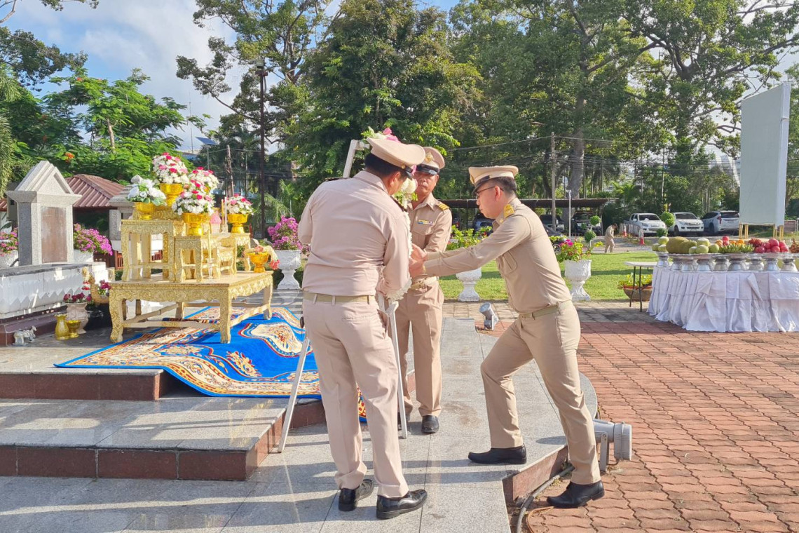 วันที่ 10 ส.ค.66 ณ บริเวณ พระบรมราชานุสาวรีย์ พระบาทสมเด็จพระจุลจอมเกล้าเจ้าอยู่หัว รัชกาลที่ 5 แห่งราชวงศ์จักรี หน้าที่ว่าการอำเภอศรีราชา จ.ชลบุรี นายวรจักร สถาพรภิญโญ นายอำเภอศรีราชา ได้นำ กำนัน ผู้ใหญ่บ้าน ร่วมร้องเพลงชาติ วางพวงมาลา คล้องพวงมาลัยกร พร้อมถวายเครื่องราชสักการะ กล่าวคำบูชาพระบาทสมเด็จพระจุลจอมเกล้าเจ้าอยู่หัว รัชกาลที่ 5 พร้อมคณะกำนัน ผู้ใหญ่บ้าน นำธูปเก้าดอก พร้อมดอกกุหลาบ ถวายเบื้องหน้าพระบรมราชานุสาวรีย์พระบาทสมเด็จพระจุลจอมเกล้าเจ้าอยู่หัว จากนั้น นายเอกรัฐ เกตุวัตถา ประธานชมรมกำนัน ผู้ใหญ่บ้าน นำกล่าวคำปฏิญาณตน