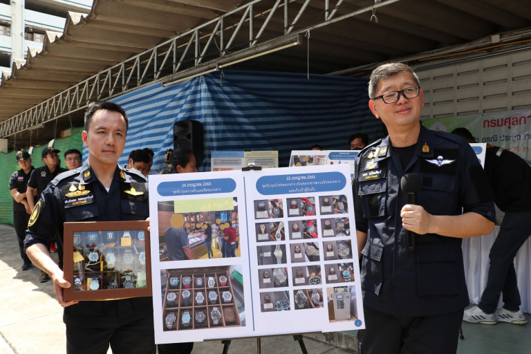 1) วันที่ 24 กรกฎาคม 2565 กรมศุลกากรได้ตรวจยึดนาฬิกาดังกล่าว และได้ประสานงานไปยังตัวแทนสิทธิในประเทศไทย เพื่อดำเนินการตรวจสอบของกลางในคดี คือ นาฬิกาหรู จำนวน 13 เรือน
