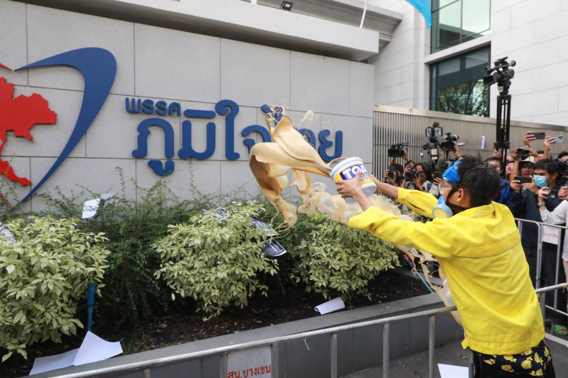 ต่อมาเวลา 15.10 น. ทางกลุ่มผู้ชุมนุมได้เดินทางถึงพรรคภูมิใจไทย ซึ่งทางพรรคได้ปิดประตูรั้วเหล็ก ป้องกันทั้งพรรคและป้ายพรรคไว้ มีเพียงเจ้าหน้าที่รักษาความปลอดภัยเท่านั้นที่อยู่ประจำการ