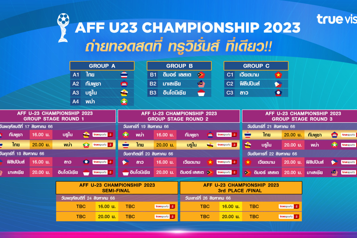 แฟนฟุตบอลห้ามพลาด ร่วมส่งกำลังใจเชียร์นักเตะไทยลุย ศึกฟุตบอลชิงแชมป์อาเซียน รุ่นอายุไม่เกิน 23 ปี AFF U23 Championship สด ครบทุกคู่ ที่ทรูวิชั่นส์ และ ทรูวิชั่นส์ นาว