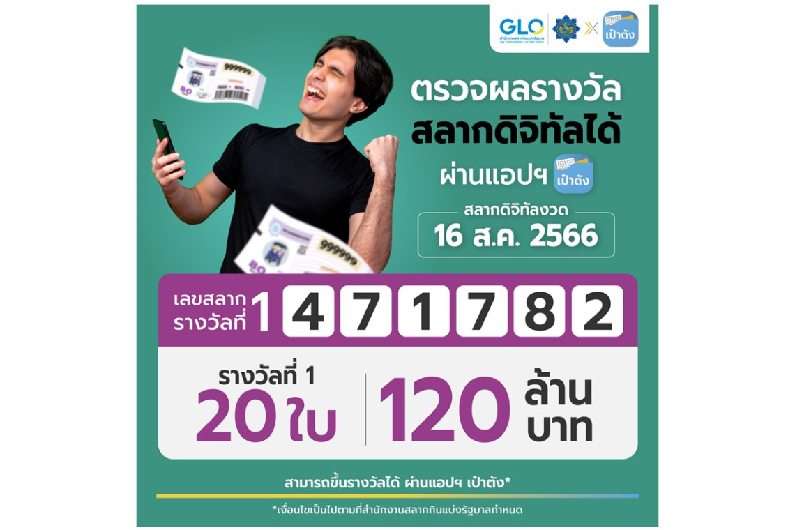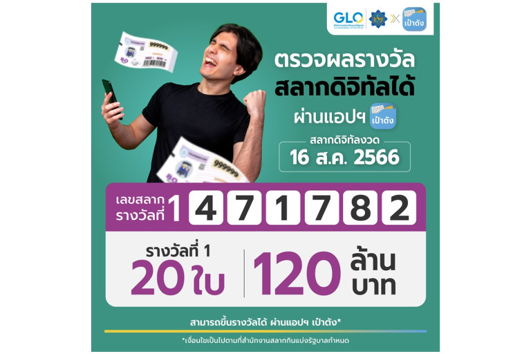 สลากดิจิทัล บนแอปฯเป๋าตัง ถูกรางวัลที่ 1 ทั้งหมด 20 ใบ เงินรางวัล 120 ล้าน