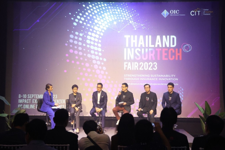นายสาระ ล่ำซำ นายกสมาคมประกันชีวิตไทย พร้อมด้วย ดร. สมพร สืบถวิลกุล นายกสมาคมประกันวินาศภัยไทย นางประภาพร ลิขสิทธิ์ นายกสมาคมตัวแทนประกันชีวิตและที่ปรึกษาการเงิน และนายจิตวุฒิ ศศิบุตร นายกสมาคมนายหน้าประกันภัยไทย ร่วมแถลงข่าวการจัดงาน Thailand InsurTech Fair 2023 ภายใต้แนวคิด “Strengthening Sustainability Through Insurance Innovation” ระหว่างวันที่ 8 - 10 กันยายน 2566ณ อาคาร 7 ศูนย์แสดงสินค้าและการประชุมอิมแพ็ค เมืองทองธานี