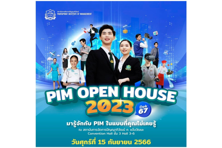 สถาบันการจัดการปัญญาภิวัฒน์ (พีไอเอ็ม) จัดกิจกรรม "PIM OPEN HOUSE 2023" วันที่ 15 ก.ย.66 เวลา 08.00-16.00 น. เชิญชวนน้องๆ นักเรียน #Dek67 ม.6 หรือเทียบเท่า มารู้จักกับพีไอเอ็มในแบบที่คุณไม่เคยรู้ พร้อมรับทุนการศึกษาสูงสุด 100% พบกับรุ่นพี่คณะต่างๆ รุ่นพี่จากโครงการ PIM IDOL GEN1. มาร่วมแบ่งปันประสบการณ์จริง จากการเรียนรูปแบบ Work-based Education การเรียนรู้ควบคู่กับการฝึกปฏิบัติงาน กิจกรรมการเรียนรู้จากคณะที่ชอบ เยี่ยมชมคณะที่ใช่ ภายในงานจัดเต็มด้วยบูธจากบริษัทในเครือข่าย การแสดงสุดพิเศษและของรางวัลอีกมากมายรออยู่ เตรียมตัวให้พร้อม แล้วชวนเพื่อนๆ มาเจอกับพี่ๆ แนะแนวพีไอเอ็ม ณ อาคารหอประชุมปัญญาภิวัฒน์ สถาบันการจัดการปัญญาภิวัฒน์ ถนนแจ้งวัฒนะ กิจกรรมฟรี! ไม่มีค่าใช้จ่าย