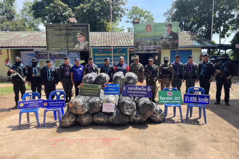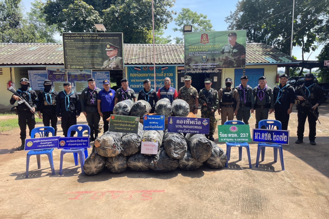 เมื่อวันที่ 19 สิงหาคม 2566 กองร้อยเฉพาะกิจทหารพรานที่ 2109 หน่วยเฉพาะกิจทหารพรานที่ 21 บ้านเหล่าหนาด ต.พนอม อ.ท่าอุเทน จ.นครพนม พ.อ.สุริวัชร์  อัครพรเดชาพงษ์ ผู้บังคับการกรมทหารพราน 21 ผบ.ฉก.ทพ.21 มอบหมายให้ ร.อ.ธนากร  นาเหล็ก ผบ.ร้อย.ทพ.2109 ฉก.ทพ.21 และเจ้าหน้าที่ทหารพรานชุดปฏิบัติการปราบปรามยาเสพติด ตามแนวชายแดน กองกำลังสุรศักดิ์มนตรี และเจ้าหน้าที่เกี่ยวข้อง แถลงการณ์ตรวจยึดกัญชา บรรจุกระสอบถุงดำ  จำนวน 15 กระสอบ น้ำหนักรวม จำนวน 330 กิโลกรัม ตรวจสอบพบเป็นกัญชาช่อดอกเกรดเอ คัดคุณภาพ ที่พึ่งเก็บเกี่ยวผลผลิต เพื่อนำมาสวมสิทธิ์ ขายฝั่งไทย โดยใช้ช่องว่างกฎหมาย ช่วงกัญชาเสรี ในการขออนุญาตขาย แต่มีการลักลอบนำผลผลิตจาก สปป.ลาว นำเข้ามาสวมสิทธิ์ ขายในตลาดมืด ขบวนการค้ากัญชาข้ามชาติ คาดว่ามีราคาซื้อขายสูง ประมาณ กิโลกรัมละ 10,000 บาท เพื่อนำมาบรรจุเป็นแพคเกจ ส่งขายพื้นที่ตอนในของไทย รวมถึงผ่านกระบวนการค้ากัญชาข้ามชาติ ส่งขายถึงต่างประเทศ เพิ่มมูลค่า ตกกิโลกรัมลพ 20,000 – 30,000 บาท  โดยการจับกุมครั้งนี้ สามารถจับกุม ได้ หลังขบวนการค้ากัญชาข้ามชาติ ลักลอบขนแบบกองทัพมด บรรทุกใส่เรือหางยาว ข้ามมาจาก สปป.ลาว มาพักบริเวณริมฝั่งแม่น้ำโขง  บ้านเหล่าสวนกล้วย ต.หนองเทา อ.ท่าอุเทน จ.นครพนม เมื่อคืนที่ผ่านมา ส่วนขบวนการค้ากัญชาข้ามชาติไหวตัวหนีทัน