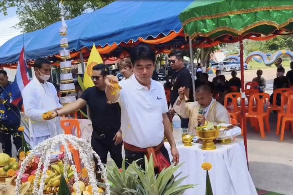 สุรินทร์ คลื่นศรัทธาต่อแถวรอรับเหรียญแจกหลวงปู่เฮง เกจิดังอีสานใต้ เป็นลมล้มฟุบจากอากาศที่ร้อนจัด อัศจรรย์เมฆลอยมาบังแดดปะรำพิธีบวงสรวง ชาวบ้านแห่ส่องเลขเด็ดตามเคย