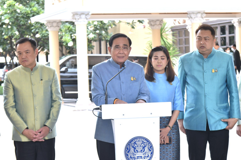 เมื่อเวลา 11.57 น.วันที่ 23 ส.ค. 2566 ที่ทำเนียบรัฐบาล พล.อ.ประยุทธ์ จันทร์โอชานายกรัฐมนตรีและรมว. กลาโหม แถลงภายหลังประชุมคณะรัฐมนตรี (ครม.) โดยมีนายอนุทิน ชาญวีรกูล รองนายกรัฐมนตรีและรมว.สาธารณสุข นายสุชาติ ชมกลิ่น รมว.แรงงานนายชัยวุฒิ ธนาคมานุสรณ์ รมว.ดิจิทัลเพื่อเศรษฐกิจและสังคม นายธนากร วังบุญคงชนะ รมต.สำนักนายกรัฐมนตรี และทีมรองโฆษก ยืนร่วมด้วย