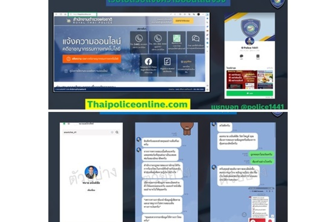 2.ประชาชนที่ได้รับความเสียหายในคดีอาชญากรรมทางเทคโนโลยี สามารถแจ้งความออนไลน์ได้ที่ https://thaipoliceonline.com เท่านั้น โดยสามารถโทรสอบถามได้ที่ สายด่วนตำรวจไซเบอร์ 1441 หรือ 081-866-3000 ไม่มีช่องทางไลน์ทางการ มีเพียงแชทบอท @police1441 ไว้ปรึกษาคดีอาชญากรรมทางเทคโนโลยี ซึ่งคอยให้บริการตอบคำถามประชาชน ตลอด 24 ชั่วโมง