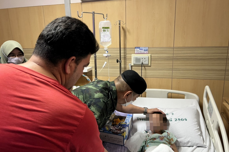 นางอัสมีรา แม่เด็กเปิดเผยว่า หลังทราบข่าวตกใจมาก ส่งสารลูกมาก กินก็ไม่ได้ นอนก็ไม่หลับ ต้องดูลูกตลอดกลัวว่าลูกะเป็นอะไรไป ส่วนอาการลูกปลอดภัยแล้ว หมดบอกว่ามีสะเก็ดระเบิดยังอยู่ในตัว แต่ยังไม่สามารถนำออกได้ ต้องรอให้เด็กกว่านี้ ช่วงที่พาลูกมา รพ.ใหม่ๆ ร้องให้หนักมากกินอะไรไม่ได้ พอกินก็อ้วกออกมา ก็รู้สึกเสียใจมากกับเหตุการณ์ในครั้งนี้ ไม่อยากให้เกิดขึ้นเลย อยากให้ลูกหายไว้ๆ ดูแล้วอยากเจ็บแทนลูกมาก ส่วนชีวิตตอนนี้เปลี่ยนไปจากเดิม ลูกจากที่เป็นเด็กร่าเริง กลายเป็นเด็กดูไม่มีความสุข