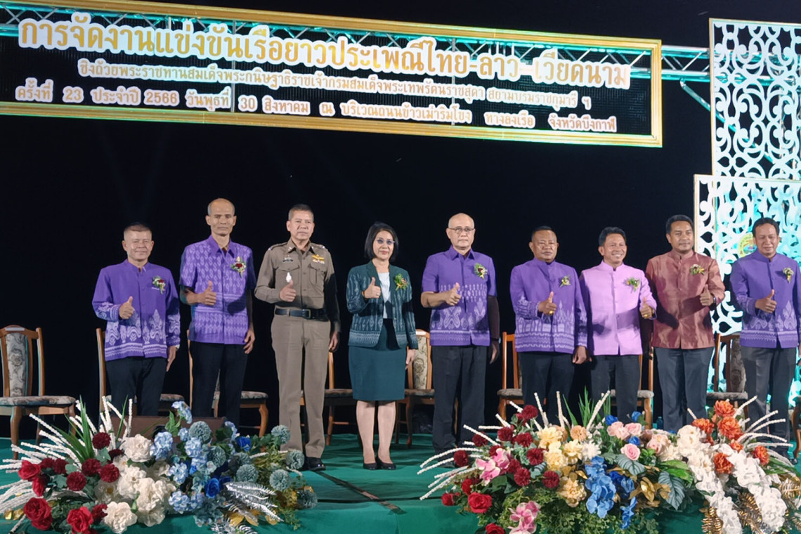 ผู้สื่อข่าวรายงาน ว่า ที่บริเวณทางลงเรือยาว ถนนข้าวเม่าริมโขง อ.เมืองบึงกาฬ จ.บึงกาฬ นายชนพหล ส่งเสริม รองผู้ว่าราชการจังหวัดบึงกาฬ เป็นประธานเปิดงานแถลงข่าวการจัดงานแข่งขันเรือยาวประเพณีไทย ลาว เวียดนาม ชิงถ้วยพระราชทานสมเด็จพระกนิษฐาธิราชเจ้า กรมสมเด็จพระเทพรัตนราชสุดาฯ สยามบรมราชกุมารี ครั้งที่ 23 ประจำปี 2566 ซึ่งจัดขึ้นระหว่างวันที่ 8 - 10 กันยายน 2566 โดยเทศบาลเมืองบึงกาฬ ร่วมกับจังหวัดบึงกาฬ องค์การบริหารส่วนจังหวัดบึงกาฬ และเครือข่ายผู้สนับสนุนการจัดงาน โดยมีผู้ร่วมงานครั้งนี้คือ นายราชันย์ วะนาพรม นายก ทม.เมืองบึงกาฬ นางกันยา อนันตทัศน์ รองนายก อบจ.บึงกาฬ พ.ต.อ.ปกรณ์ ภาวิไล ผกก.สภ.เมืองบึงกาฬ นายพุทธาสิทธิ์ จันทร์เต็ม ประชาสัมพันธ์จังหวัดบึงกาฬ นายอิทธิรัฐ สินารักษ์ ท่องเที่ยวและกีฬาจังหวัดบึงกาฬ และนายธนาพงศ์ แสนสุภา รองนายก ทม.เมืองบึงกาฬ นายประกันชัย ไกรรัตน์ ผู้แทนนายแพทย์สสจ.บึงกาฬ นายดอกดิน ต้อมทอง ผู้อำนวยการกลุ่มงานส่งเสริมการพัฒนาชุมชน ร่วมขึ้นเวทีแถลงข่าว และมีนายนพดล จอมเพชร ปลัดจังหวัดบึงกาฬ นายสมหวัง อารีย์เอื้อ หัวหน้าสำนักงานจังหวัดบึงกาฬ หัวหน้าส่วนราชการ สมาชิกสภาเทศบาลเมืองบึงกาฬ เจ้าหน้าที่และประชาชนร่วมชมการแสดงของนักเรียน ร.ร.บึงกาฬ ก่อนการเปิดงานแถลงข่าว
