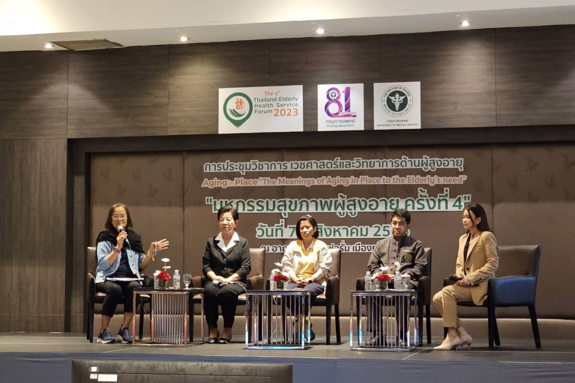 ทางด้าน รศ.ดร.ขนิษฐา นันทบุตร ผู้อำนวยการศูนย์วิจัยและพัฒนาระบบสุขภาพชุมชน คณะพยาบาลศาสตร์ มหาวิทยาลัยขอนแก่น ภายใต้การสนับสนุนของสำนักสนับสนุนสุขภาวะชุมชน (สำนัก 3) สสส. กล่าวว่า ปัจจุบัน สสส.โดย สำนัก 3 ทำงานขับเคลื่อนในการดูแลผู้สูงอายุ 2 ส่วนด้วยกัน คือ 1. การทำงานเสริมศักยภาพชุมชนท้องถิ่น พยายามสร้างกลไกการทำงานภายในท้องถิ่นเอง โดยใช้เครื่องมือต่างๆ ในการเชื่อมร้อยองค์กรต่างๆ ผลักดันไปสู่แผนการทำงานดูแลผู้สูงอายุในชุมชนท้องถิ่น เน้นการจัดบริการต่างๆขององค์กรชุมชนและหน่วยงานรัฐในชุมชนที่เป็นผู้ปฏิบัติใกล้ชิดกับผู้สูงอายุในพื้นที่ รับนโยบายภาพใหญ่มาทำงานในพื้นที่ ปฏิบัติแล้วไม่เป็นผล ก็ต้องไปปรับที่ยุทธศาสตร์ คือ ส่วนที่ 2 ที่ร่วมทำงานกับหน่วยงานภาคียุทธศาสตร์ในการที่ต้องออกแบบสนับสนุนให้พื้นที่นำนโยบายไปดูแลผู้สูงอายุได้จริง