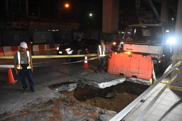 เมื่อเวลา 18.00 น. วันที่ 6 ก.ย. พ.ต.อ.พรทวี สมวงค์ ผกก.สน.โชคชัย ไปตรวจสอบเหตุถนนทรุดตัวที่ถนนลาดพร้าว ฝั่งขาออก ปากซอยลาดพร้าว 67/2 แขวงสะพานสอง เขตวังทองหลาง กรุงเทพฯ จึงไปตรวจสอบที่เกิดเหตุ พร้อมด้วยเจ้าหน้าที่การไฟฟ้านครหลวง และเจ้าหน้าที่โยธา สำนักงานเขตวังทองหลาง