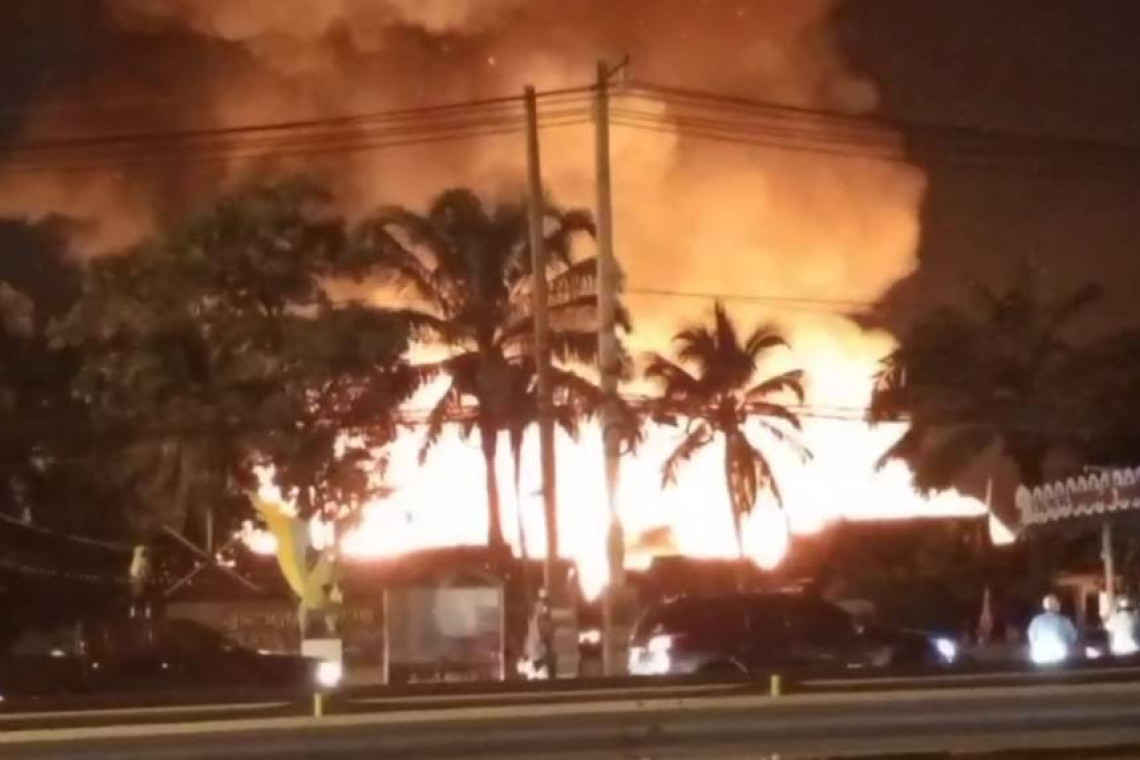 เมื่อเวลาประมาณ 20.00 น. ของวันนี้ 7 ก.ย.66 ได้เกิดเหตุเพลิงลุกไหม้ตลาดน้ำ 4 ภาค พัทยา อ.บางละมุง จ.ชลบุรี เมืองพัทยา และ อปท.ข้างเคียง ได้ระดมรถดับเพลิงเข้าระงับเหตุเพลิงไหม้ ขณะนี้ยังไม่สามารถควบคุมเพลิงได้ เนื่องจากตลาดน้ำ 4 ภาคพัทยา ทำด้วยไม้ทั้งโครงการ ซึ่งเป็นเชื้อเพลิงอย่างดี เบื้องต้นยังไม่ทราบสาเหตุ การเกิดเหตุเพบิงไหม้ในครั้งนี้
