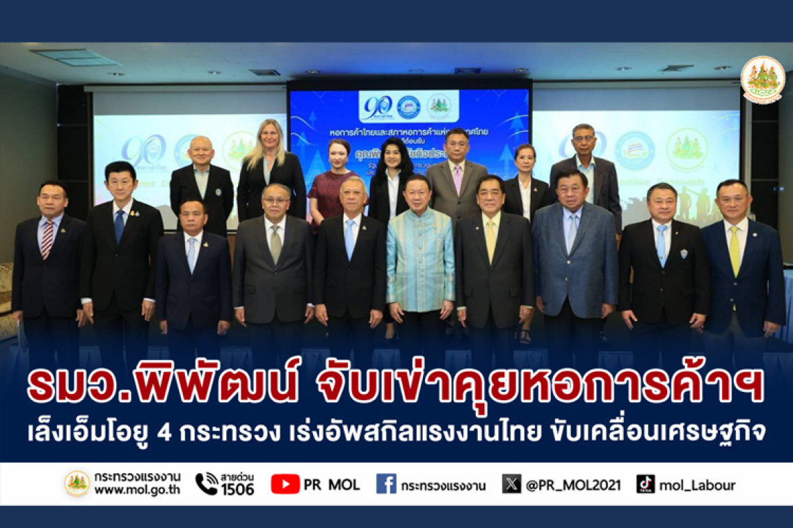 วันที่ 8 กันยายน 2566 นายพิพัฒน์ รัชกิจประการ รัฐมนตรีว่าการกระทรวงแรงงาน เป็นประธานการประชุมร่วมกับนายสนั่น อังอุบลกุล ประธานกรรมการหอการค้าไทยและสภาหอการค้าแห่งประเทศไทย เพื่อรับฟังข้อเสนอนโยบายด้านแรงงานของประเทศไทย โดยมี นายบุญชอบ สุทธมนัสวงษ์ ปลัดกระทรวงแรงงาน พร้อมด้วย ตัวแทนสมาคมผู้ประกอบการภาคเอกชน หอการค้าแห่งประเทศไทย เข้าร่วม ณ ห้องประชุม ชั้น 2 สภาหอการค้าแห่งประเทศไทย