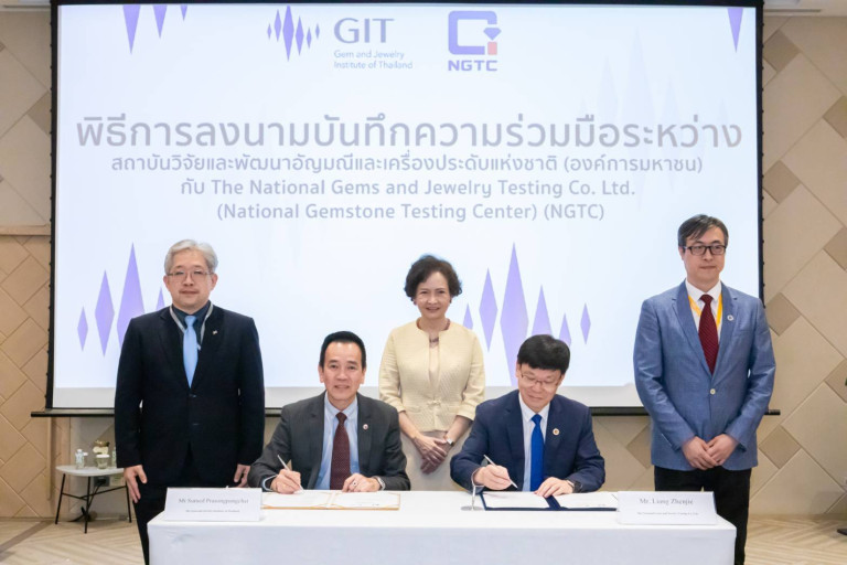 นายสุเมธ ประสงค์พงษ์ชัย ผู้อำนวยการสถาบันวิจัยและพัฒนาอัญมณีและเครื่องประดับแห่งชาติ หรือ GIT เปิดเผยว่า The National Gems and Jewelry Testing Co. Ltd. (National Gemstone Testing Center) (NGTC), Beijing, China ถือได้ว่าเป็นห้องปฏิบัติการตรวจสอบอัญมณีและเครื่องประดับชั้นแนวหน้าของสาธารณรัฐประชาชนจีน และมีความเชี่ยวชาญอย่างยิ่งในการตรวจสอบหยก เพื่อร่วมสร้างมาตรฐานการตรวจสอบร่วมกันระหว่างประเทศไทย และ จีน สถาบันจึงได้จับมือกับ NGTC เพื่อแลกเปลี่ยนองค์ความรู้ด้านการตรวจสอบอัญมณีระหว่างกัน โดยได้จัดพิธีลงนามความร่วมมือในงานบางกอกเจมส์แอนด์จิวเวลรี่แฟร์ ครั้งที่ 68