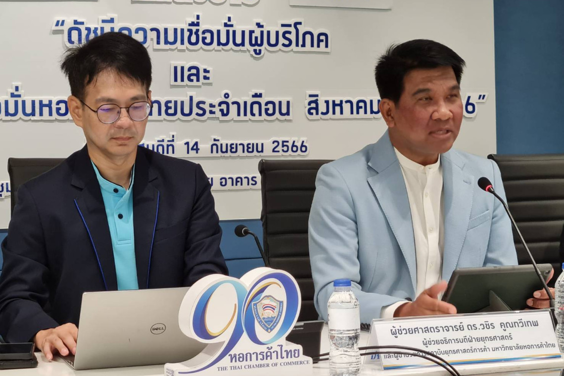 นายธนวรรธน์ พลวิชัย อธิการบดีมหาวิทยาลัยหอการค้าไทยและประธานที่ปรึกษาศูนย์พยากรณ์เศรษฐกิจและธุรกิจกล่าวถึงผลการสำรวจดัชนีความเชื่อมั่นของผู้บริโภคประจำเดือนสิงหาคม 2566 โดยดัชนีความเชื่อมั่นของผู้บริโภคปรับตัวดีขึ้นอีกครั้งหลังจากเดือนที่แล้วที่ปรับตัวลดลงเป็นครั้งแรกในรอบ 14 เดือน เนื่องจากผู้บริโภคเริ่มกลับมามีความเชื่อมั่นในการจัดตั้งรัฐบาลใหม่ว่า จะจัดตั้งได้เร็วเพื่อขับเคลื่อนเศรษฐกิจให้ฟื้นตัวขึ้นหลังจากที่มีการแต่งตั้งนายเศรษฐา ทวีสิน เป็นนายกรัฐมนตรีคนที่ 30 ของประเทศไทย และเห็นว่าการเมืองไทยจะมีเสถียรภาพมากขึ้นในอนาคตหลังจากที่มีการจัดตั้งรัฐบาลสลายขั้วการเมืองต่างๆ ที่มีความเห็นแตกต่างกันโดยที่ความขัดแย้งทางการเมืองน่าจะคลี่คลายลง ส่งผลให้ความเชื่อมั่นของผู้บริโภคทุกรายการปรับตัวดีขึ้นทุกรายการ