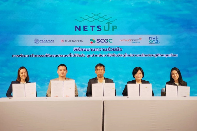 ดร.สุรชา จุคมศักดิ์ ประธานเจ้าหน้าที่สายงานนวัดกรรม และรองกรรมการผู้จัดการใหญ่ บริษัท เอสซีจี เคมิคอลส์ จำกัด (มหาชน) หรือ SCGC เผยว่า "โมเดล Nets UP เกิดขึ้นจากความมุ่งมั่นของ SCGC ในการขับเคลื่อนองค์กรภายใต้แนวทาง ESG (Environmental, Social and Govemance) ซึ่งเน้นด้านเศรษฐกิจหมุนเวียนอย่างเป็นรูปธรรม ผ่านการพังนานวัตกรรมรีไซเคิล โดยนำความเชี่ยวชาญด้านเม็ดพลาสติกรีไซเคิลคุณภาพสูง หรือ High Quality PCR (High Quality Post-Consumer Recycled Resin) มาพัฒนาเป็น Marine Materials วัสดุรีไซเคิลจากอวนประมงไม่ใช้แล้ว ซึ่งเป็นทางเลือกใหม่เพื่อความยั่งยืนสำหรับภาคอุดสาหกรรมที่เกี่ยวเนื่อง ทั้งนี้ Nets Up ได้เชื่อมโยงโซ่คุณค่า (Value Chain) อย่างครบวงจร โดยบูรณาการทุกภาคส่วน ตั้งแต่ต้นน้ำจนถึงปลายน้ำ ครอบคลุมทุกมิติ เช่น การลดผลกระทบทางสิ่งแวดล้อมด้วยการบริหารจัดการขยะทะเล การส่งเสริมการจัดการนประมงไม่ใช้แล้วไม่ให้หลุดรอดออกสู่ทะเล การพัฒนานวัตกรรมและการสร้างมูลค่าเพิ่มให้กับอวนประมงไม่ใช้แล้ว การดำเนินการของธนาคารขยะชุมชน การสร้างเครือข่ายประมงพื้นบ้าน จิตอาสาและองค์กรด้านสิ่งแวดล้อม เป็นต้น