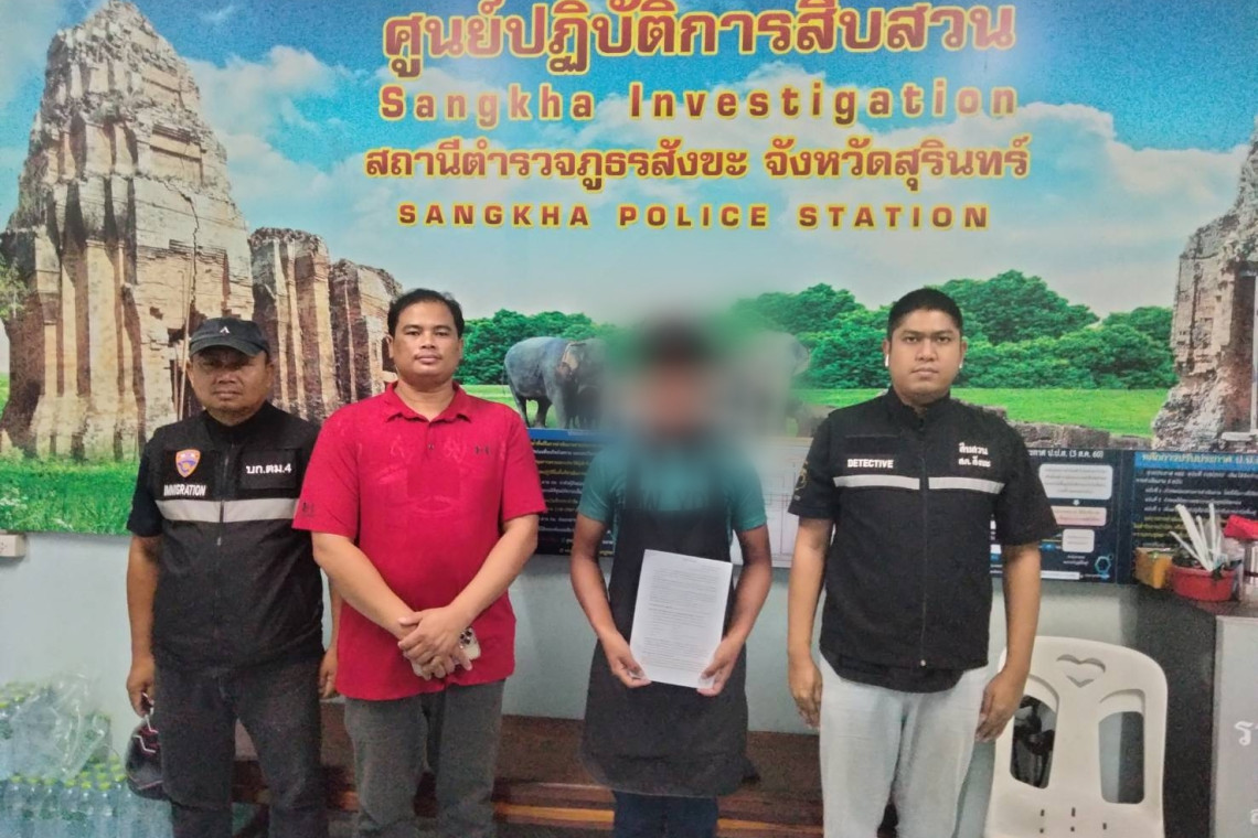 พบนายออง อายุ 21 ปี สัญชาติ เมียนมาร์ ขับจักรยานยนต์พ่วงมาขายโรตี เจ้าหน้าที่ชุดจับกุมได้แสดงตนและตรวจสอบ พบว่าเข้าเมืองผิดกฏหมาย และการมีงานทำ แจ้งข้อกล่าวหาให้ทราบว่า “เป็นคนต่างด้าวทำงานนอกเหนือสิทธิ์ที่จะทำได้ อันเป็นความผิดตาม พ.ร.ก.บริหารจัดการการทำงานของคนต่างด้าว พ.ศ. 2561” ทั้งนี้ ได้นำส่ง พงส.สภ.สังขะ เพื่อดำเนินคดีตามกฎหมายต่อไป