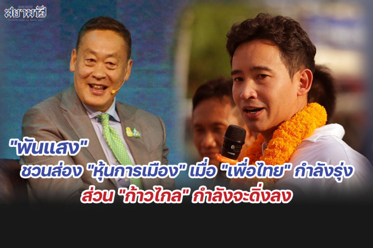 ขณะที่แนวโน้ม “หุ้นการเมือง” อย่าง “พรรคเพื่อไทย” กำลัง “มีความหวัง” โอกาสเป็นบวกเริ่มเด่นชัดหลังจากที่เคยถูกถล่มจาก “ด้อมส้ม” อย่างหนัก หลังจากที่ “พรรคก้าวไกล” ไม่ได้อยู่ใน “สมการ” การจัดตั้งรัฐบาล ที่ผ่านมา “พรรคเพื่อไทย” ถูกโจมตีว่าตระบัดสัตย์ หันไปจับมือกับ “พรรค 2 ลุง” แต่สิ่งเหล่านั้นกำลังจะกลายเป็น “อดีต” แต่ปัจจุบันที่เห็นและเป็นอยู่ คือการที่ “พรรคก้าวไกล” อยู่ในภาวะที่เจอกับสถานการณ์อันยากลำบาก ...*...