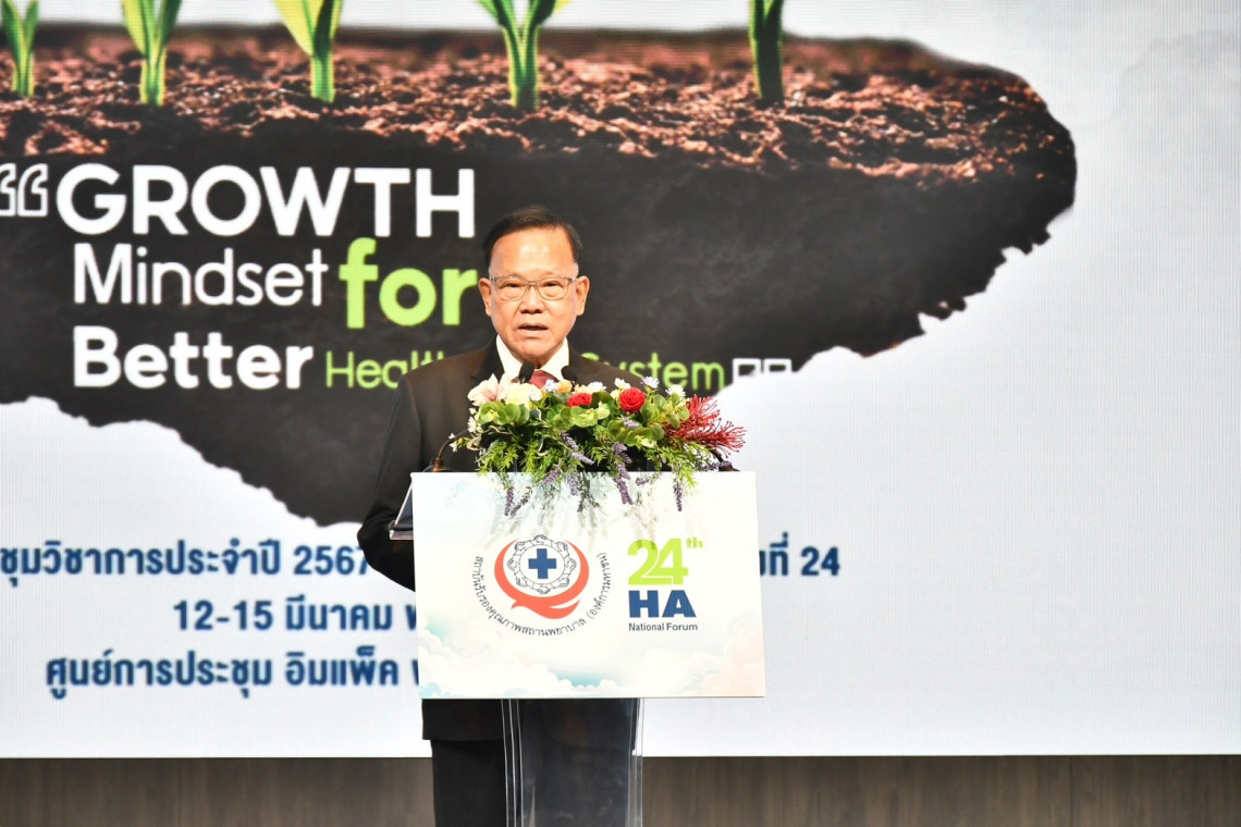 นายสันติ พร้อมพัฒน์ รัฐมนตรีช่วยว่าการกระทรวงสาธารณสุข กล่าวปาฐกถาและเปิดการประชุมวิชาการประจำปี ครั้งที่ 24 ของสถาบันรับรองคุณภาพสถานพยาบาล (องค์การมหาชน) หรือ สรพ. ซึ่งจัดขึ้นระหว่างวันที่ 12-15 มีนาคม 2567 ภายใต้หัวข้อ “Growth Mindset for Better Healthcare System ระบบบริการสุขภาพที่ก้าวหน้า ด้วยกรอบความคิดที่กว้างไกล” พร้อมมอบประกาศนียบัตรให้กับสถานพยาบาลที่ผ่านการรับรองกระบวนการคุณภาพมาตรฐาน HA จำนวน 409 แห่ง