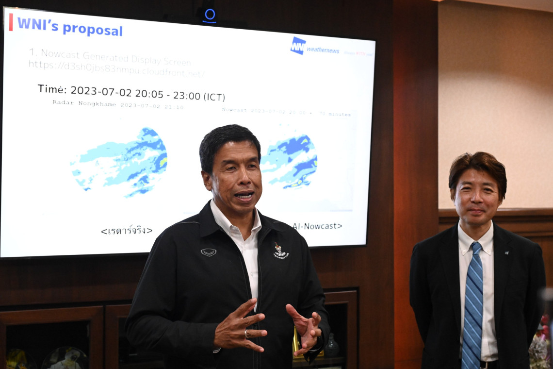 (14 มี.ค.67) นายชัชชาติ สิทธิพันธุ์ ผู้ว่าราชการกรุงเทพมหานคร ร่วมหารือกับ Mr.Chihito Kusabiraki CEO จากบริษัท Weathernews Inc. ประเทศญี่ปุ่น ในการเปิดใช้ระบบ AI Nowcast สำหรับการพยากรณ์ฝนล่วงหน้าในพื้นที่กรุงเทพมหานคร โดยมีนายภิมุข สิมะโรจน์ เลขานุการผู้ว่าราชการกรุงเทพมหานคร นายเอกวรัญญู อัมระปาล โฆษกของกรุงเทพมหานคร นายสมบัติ วรสินวัฒนา รองผู้อำนวยการสำนักการระบายน้ำ และผู้บริหารสำนักการระบายน้ำ ร่วมหารือ ณ ห้องอัมรินทร์ ศาลาว่าการกรุงเทพมหานคร เขตพระนคร