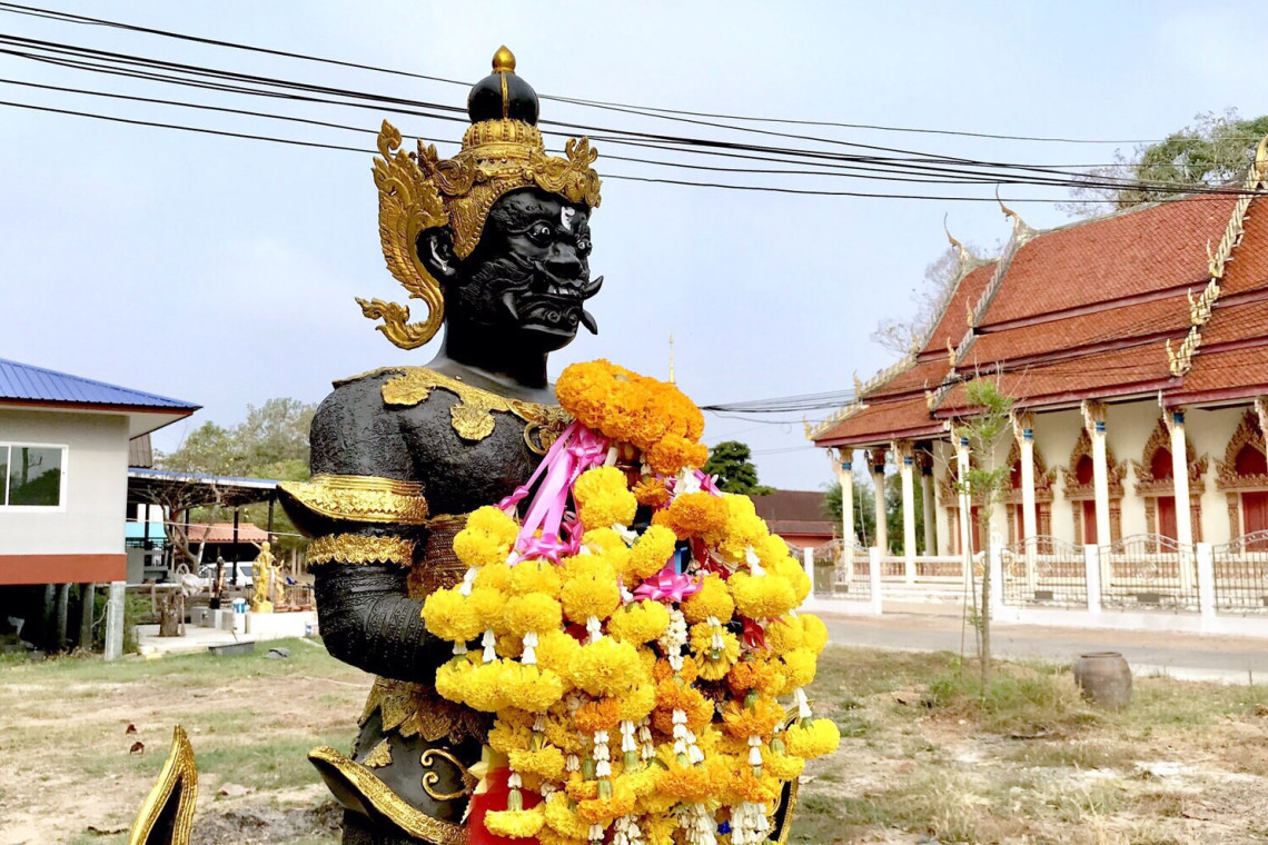 ต่อมา “กลุ่มนักบุญ สายหลอน” ผู้ที่จัดสร้างท้าวเวสสุวรรณ โดยนางสาวจารุวรรณ ซัวเกษม เล่าให้ฟังว่า กลุ่มของตนเดินทางมาจากกรุงเทพ ได้นำนางรำมารำถวาย เนื่องจากตั้งแต่จัดสร้างท้าวเวสสุวรรณที่มีความสูงรวมฐาน 1.8 เมตร นำมาประดิษฐานเมื่อวันที่ 7 มกราคม 2567 ที่วัดเกาะทองแห่งนี้ ทำให้กิจการร้านค้าเจริญรุ่งเรืองอย่างมาก