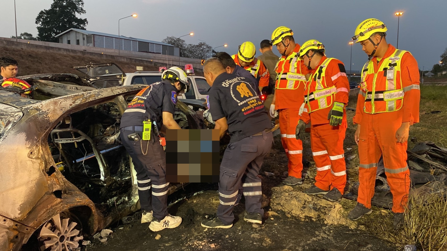 เมื่อเวลา 05.30 น.วันที่ 15 มีนาคม 2567 พ.ต.ท.โสพล โกมลสุทธิ์ พนักงานสอบสวน ตำรวจทางหลวงมาบประชันได้รับเหตุเก๋งชนแท่งปูนแบริเออร์ไฟลุกท่วมให้เกิดบนถนนมอเตอร์เวย์ ขาเข้ามาบตาพุด กมที่ 120+900 ต.หนองปรือ อ.บางละมุง จ.ชลบุรีหลังรับแจ้งพร้อมมูลนิธิสว่างบริบูรณ์เมืองพัทยารุดไปตรวจสอบ