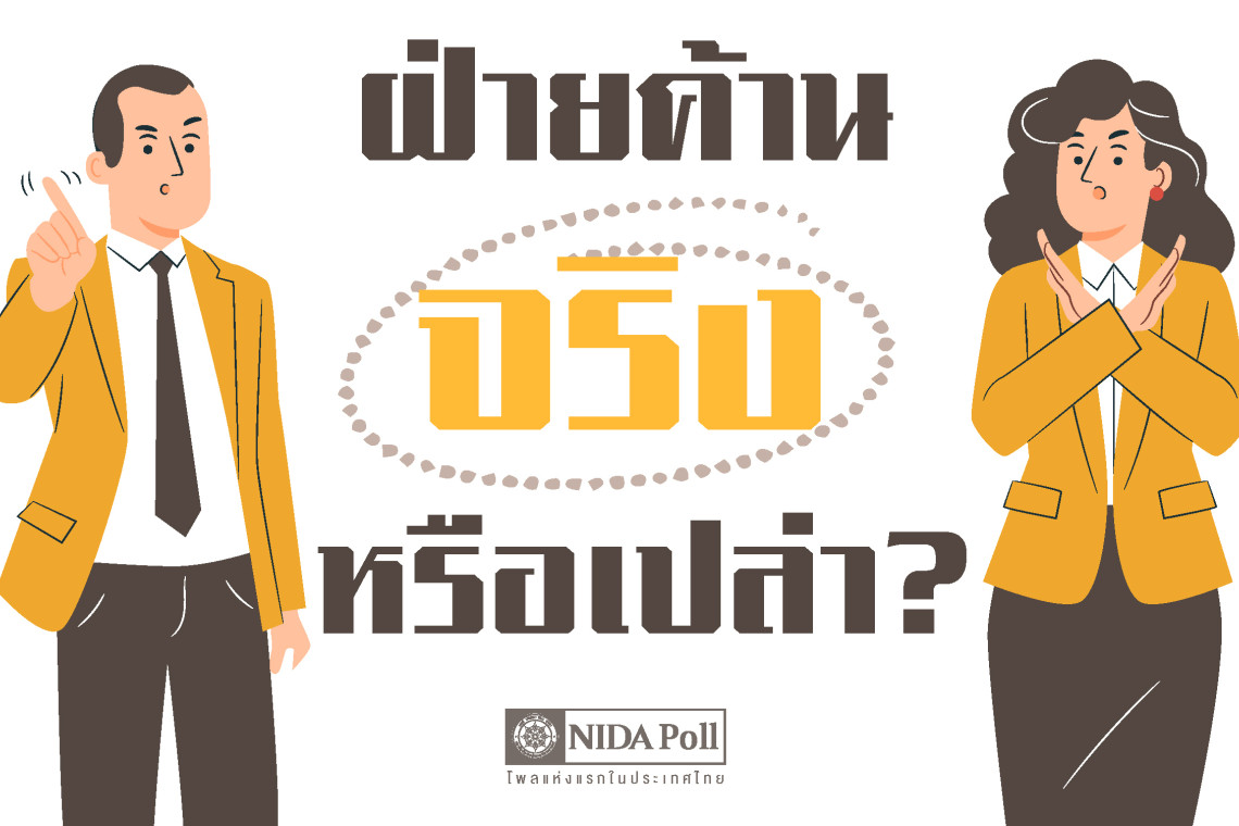 ศูนย์สำรวจความคิดเห็น “นิด้าโพล” สถาบันบัณฑิตพัฒนบริหารศาสตร์ (นิด้า) เปิดเผยผลสำรวจของประชาชน เรื่อง “ฝ่ายค้าน จริงหรือเปล่า?” ทำการสำรวจระหว่างวันที่ 7-8 มีนาคม 2567 จากประชาชนที่มีอายุ 18 ปีขึ้นไป กระจายทุกภูมิภาค ระดับการศึกษา อาชีพ และรายได้ ทั่วประเทศ รวมทั้งสิ้น จำนวน 1,310 หน่วยตัวอย่าง เกี่ยวกับการทำงานของฝ่ายค้านในสภาผู้แทนราษฎร การสำรวจอาศัยการสุ่มตัวอย่างโดยใช้ความน่าจะเป็นจากบัญชีรายชื่อฐานข้อมูลตัวอย่างหลัก (Master Sample) ของ “นิด้าโพล” สุ่มตัวอย่างแบบหลายขั้นตอน (Multi-stage Sampling) เก็บข้อมูลด้วยวิธีการสัมภาษณ์ทางโทรศัพท์ โดยกำหนดค่าความเชื่อมั่น ร้อยละ 97.0