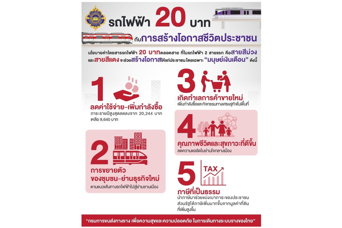 รถไฟฟ้า 20 บาทตลอดสาย 5 เดือนดันผู้โดยสารใช้บริการพุ่ง 18%