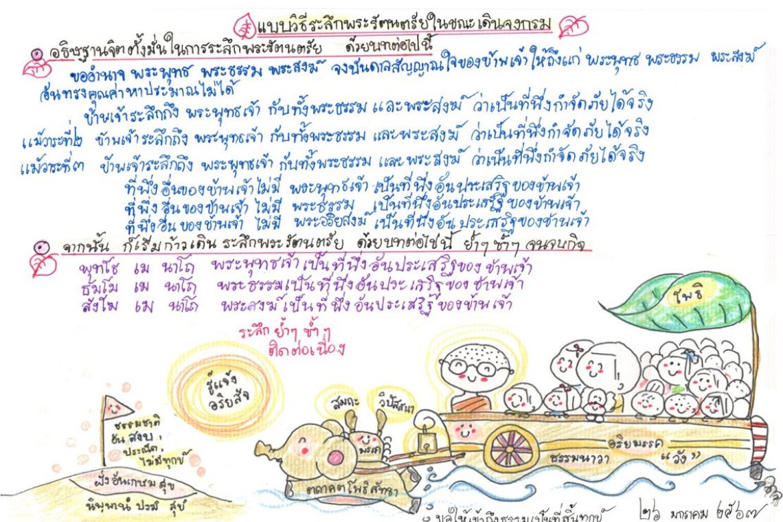 จึงได้ทรงเล็งเห็นความสำคัญในการพระราชทานเผยแพร่หลักธรรมอันทรงคุณค่าที่พุทธศาสนิกชน ตลอดจนประชาชนพลเมืองชาติ ทุกหมู่เหล่า ให้ได้ศึกษาหลักการวิธีปฏิบัติ อันได้ชื่อว่าเป็นการปฏิบัติตามพระธรรม คำสอน เพื่อเข้าถึงความเป็นผู้รู้ ผู้ตื่น ผู้เบิกบาน ที่ชื่อว่า พุทธะ คือสัจธรรมที่เป็นความรู้ อย่างผู้รู้แจ้งด้วยปัญญา ผ่านหลักสัจธรรมความเป็นจริงตามธรรมชาติ ที่พระพุทธองค์นำมาบอกสอน ที่ชื่อว่า ธรรมะ ด้วยการเป็นผู้น้อมนำประพฤติปฏิบัติจนสามารถรู้ตาม เห็นตาม ที่ชื่อว่าสังฆะ อันพุทธะ ธรรมะ สังฆะนี้เป็นสรณะที่พึงยึดเป็นพลังทางใจ พลังทางสติปัญญา อย่างแท้จริง ตามแนวทางการปฏิบัติธรรมนาวาของ พระจารุวณฺโณ ภิกฺขุ (พระอาจารย์ต้น)