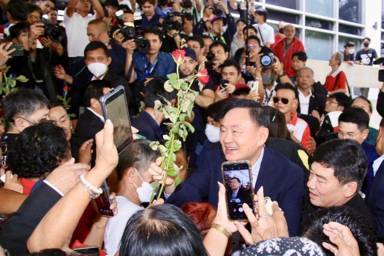 "ทักษิณ" อดีตนายกรัฐมนตรี เดินทางเข้าที่ทำการพรรคเพื่อไทยครั้งแรก โดยมีแฟนคลับแห่ต้อนรับ