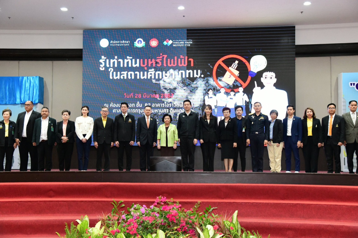 กรุงเทพมหานคร โดยสำนักการศึกษามีความห่วงใยนักเรียนในเรื่องของบุหรี่ไฟฟ้า จึงรวมพลังผู้บริหารสถานศึกษาทั้ง 437 แห่ง มาร่วมกันสร้างรั้วโรงเรียนที่แข็งแกร่ง เพื่อปกป้องนักเรียนของเราที่มีกว่า 2 แสนคน ให้รอดปลอดภัยจากพิษร้ายของบุหรี่ไฟฟ้า โดยจัดให้มีการเสวนาในประเด็น “รู้เท่าทันบุหรี่ไฟฟ้า ในสถานศึกษา กทม.” เพื่อสร้างความตระหนักถึงพิษภัยของบุหรี่ไฟฟ้า รู้และเข้าใจสถานการณ์ พัฒนาการการปรับเปลี่ยนรูปแบบสีสัน วิธีการ อย่างเท่าทันทั้งผู้สูบและผู้ขาย ร่วมกันสร้างกำแพงกั้นพิษภัยสู่ลูกหลาน เด็กและเยาวชน ซึ่งการเสวนาวันนี้ได้รับเกียรติจากทีมวิทยากรผู้มากด้วยความรู้และหลากหลายประสบการณ์ที่จะช่วยให้เกิดความเข้าใจและรู้เท่าทันกับบุหรี่ไฟฟ้า อาทิ พ.ต.อ. ประทีป เจริญกัลป์ รองเลขาธิการคณะกรรมการคุ้มครองผู้บริโภค ดร.ชนะ สุ่มมาตย์ ผู้เชี่ยวชาญด้านการพัฒนาการแนะแนว รักษาการในตำแหน่งที่ปรึกษาด้านการศึกษาพิเศษและผู้ด้อยโอกาส สำนักงานคณะกรรมการการศึกษาขั้นพื้นฐาน รศ.ดร.แพทย์หญิงเริงฤดี ปธานวนิช ภาควิชาเวชศาสตร์ชุมชน คณะแพทยศาสตร์โรงพยาบาลรามาธิบดี และนายพชรพรรษ์ ประจวบลาภ เลขาธิการสถาบันยุวทัศน์แห่งประเทศไทย เป็นต้น