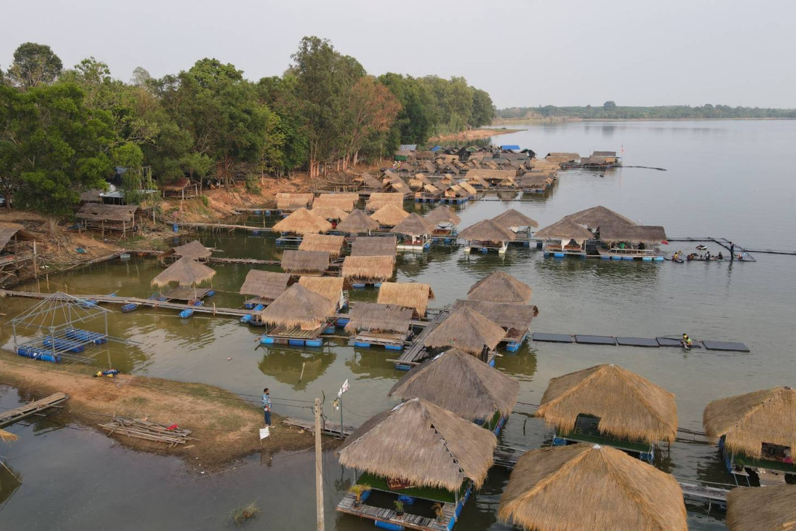วันที่ 28 มี.ค.67 ผู้สื่อข่าวรายงานว่าที่บริเวณอ่างเก็บน้ำห้วยลิงโจน ตำบลห้องแซง อำเภอเลิงนกทา จังหวัดยโสธรซึ่งเป็นอ่างเก็บน้ำขนาดกลางตั้งอยู่ในพื้นที่ตำบลห้องแซง อำเภอเลิงนกทา โดยโครงการอ่างเก็บน้ำห้วยลิงโจน ได้อนุญาตให้ชาวบ้านและผู้ประกอบการแพร้านอาหารเข้าไปดำเนินการเปิดเป็นร้านอาหารริมอ่างเก็บน้ำพร้อมกับได้ก่อสร้างเป็นแพลอยน้ำภายในอ่างเก็บน้ำห้วยลิงโจนได้เพื่อรองรับนักท่องเที่ยวและประชาชนทั่วไปที่ไปผักผ่อนและเล่นน้ำคลายร้อนในช่วงหน้าแล้งและช่วงเทศกาลสงกรานต์ที่จะมาถึงนี้