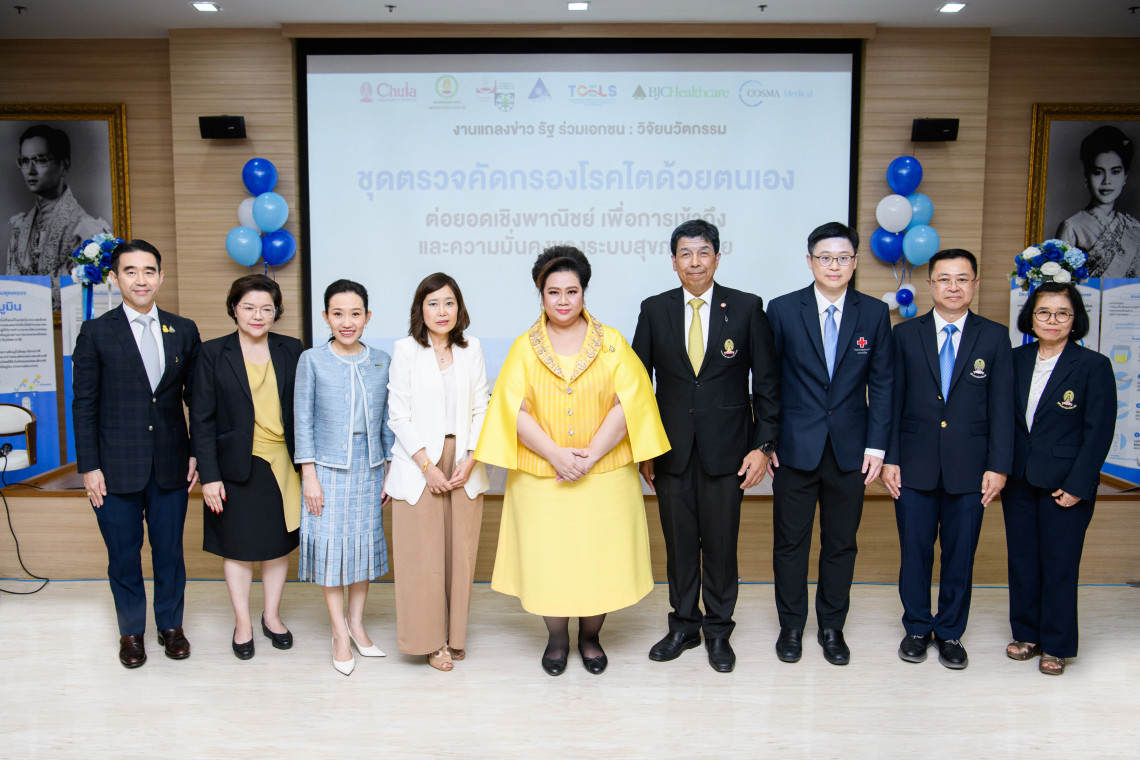 คุณศุภมาส อิศรภักดี รัฐมนตรีว่าการกระทรวงการอุดมศึกษา วิทยาศาสตร์ วิจัยและนวัตกรรม เป็นประธานเปิดตัววิจัยนวัตกรรมชุดตรวจไมโครอัลบูมิน ในปัสสาวะ ร่วมกับผู้บริหารภาคีเครือข่ายภาครัฐและเอกชน และทีมวิจัย ประกอบด้วย รศ.นพ.ฉันชาย สิทธิพันธุ์ ผู้อำนวยการโรงพยาบาลจุฬาลงกรณ์ และคณบดีคณะแพทยศาสตร์ จุฬาลงกรณ์มหาวิทยาลัย, ศ.ดร.นพ.ณัฐชัย ศรีสวัสดิ์ ผู้ช่วยผู้อำนวยการโรงพยาบาลจุฬาลงกรณ์ และผู้อำนวยการศูนย์ความเป็นเลิศทางการแพทย์ด้านโรคไตในภาวะวิกฤตแห่งโรงพยาบาลจุฬาลงกรณ์, รศ.ดร.กิตตินันท์ โกมลภิส รองผู้อำนวยการสถาบันวิจัยเทคโนโลยีชีวภาพและวิศวกรรมพันธุศาสตร์, ศ.ดร.ศิริรัตน์ เร่งพิพัฒน์ ผู้อำนวยการศูนย์ตรวจวินิจฉัยตามมาตรฐานสากล Qualified Diagnostic Development center, ดร.จุไรรัตน์ พรหมใจ ผู้จัดการงานวิจัย สถาบันวิจัยระบบสาธารณสุข (สวรส.), คุณนริศา มัณฑางกูร ผู้อำนวยการโปรแกรมบริหารและพัฒนาเทคโนโลยีเครื่องมือแพทย์และหุ่นยนต์ทางการแพทย์ขั้นสูง ศูนย์ความเป็นเลิศด้านชีววิทยาศาสตร์ (องค์การมหาชน) (TCELS) คุณอัศวิน เตชะเจริญวิกุล ประธานเจ้าหน้าที่บริหารและกรรมการผู้จัดการใหญ่ กลุ่มบีเจซี บิ๊กซี และ คุณฐาปณี เตชะเจริญวิกุล กรรมการรองผู้จัดการใหญ่อาวุโส กลุ่มบีเจซี บิ๊กซี ณ ห้อง 1201 อาคารภูมิสิริมังคลานุสรณ์ โรงพยาบาลจุฬาลงกรณ์