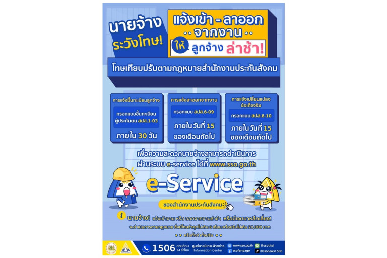 ประกันสังคมย้ำนายจ้างแจ้งเข้า-แจ้งลาออกจากงานให้ลูกจ้างล่าช้า ระวังมีโทษเทียบปรับตามกฎหมาย