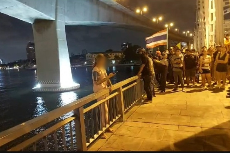 เมื่อคืนวันที่ 30 มี.ค.67 ร.ต.อ.รัตนพงษ์ พงษ์เสือ รองสวป.สน.บางคอแหลม ได้รับแจ้งเหตุผู้หญิงจะกระโดดสะพานลงไปในแม่น้ำเจ้าพระยา เหตุเกิดที่บริเวณกลางสะพานกรุงเทพ แขวงและเขตบางคอแหลม กทม. จึงรุดไปตรวจสอบที่เกิดเหตุ พร้อมประสานอาสามูลนิธิร่วมกตัญญู