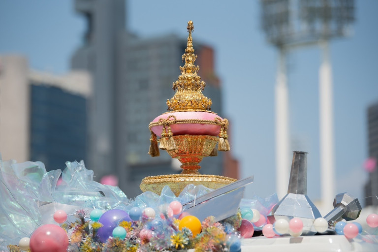 อีกทั้งขบวนยังถูกตกแต่งด้วยดอกไม้จากพลาสติกที่ใช้แล้ว กลับมาใช้ซ้ำให้เกิดประโยชน์สูงสุด สอดคล้องกับคอนเซ็ปท์ของงานนั่นคือ Unity to Sustainability และร้อยเรียงเป็น “พวงดอกกล้วยไม้ที่ผลิบาน” ดั่งโบราณว่า