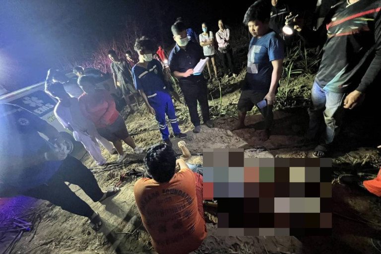 จากนั้น จึงเดินทางไปตรวจสอบที่เกิดเหตุ พร้อมประสานแพทย์เวร รพ.ด่านมะขามเตี้ย ให้มาร่วมชันสูตรพลิกศพ