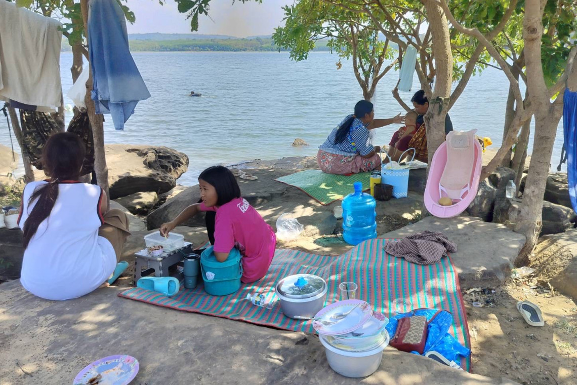 สุรินทร์ รับอากาศร้อนจัด ชาวบ้าน วัยรุ่น หนุ่มสาว พากันลงเล่นน้ำอ่างเก็บน้ำทำนบ ใกล้ชายแดนไทย-กัมพูชา คลายร้อน อย่างสนุกสนาน