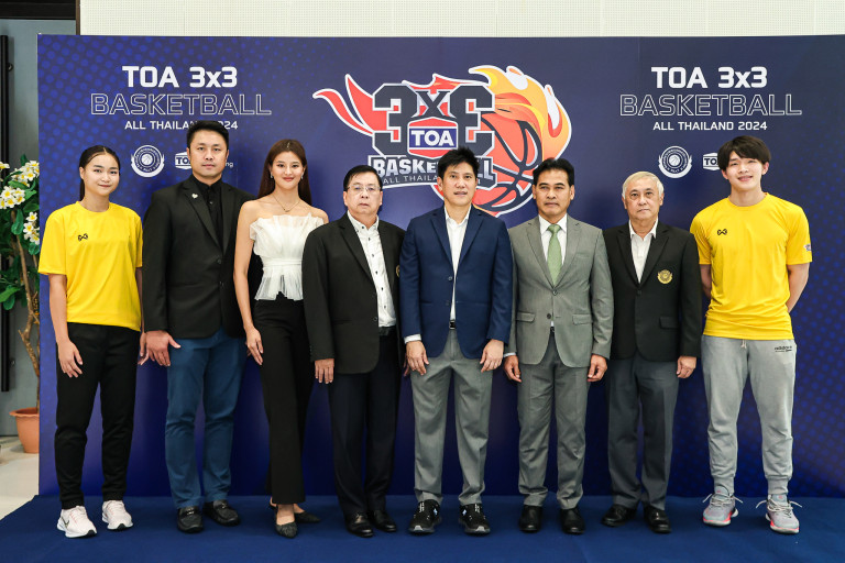 วันที่ 3 เม.ย. 2567 นายสุรศักดิ์ เกิดจันทึก รองผู้ว่าการการกีฬาแห่งประเทศไทย ร่วมด้วย จตุภัทร์ ตั้งคารวคุณ ประธานเจ้าหน้าที่บริหารบริษัท ทีโอเอ เพ้นท์ (ประเทศไทย) จำกัด (มหาชน), นิพนธ์ ชวลิตมณเฑียร นายกสมาคมกีฬาบาสเกตบอลแห่งประเทศไทย และ ปิยพงศ์ พิรุณ เลขาธิการสมาคมกีฬาบาสเกตบอลแห่งประเทศไทย ร่วมแถลงข่าว “TOA 3x3 บาสเกตบอล ออลไทยแลนด์ 2024” โดยจัดขึ้นที่ชั้น 24 อาคารเฉลิมพระเกียรติ 7 รอบพระชนมพรรษา การกีฬาแห่งประเทศไทย