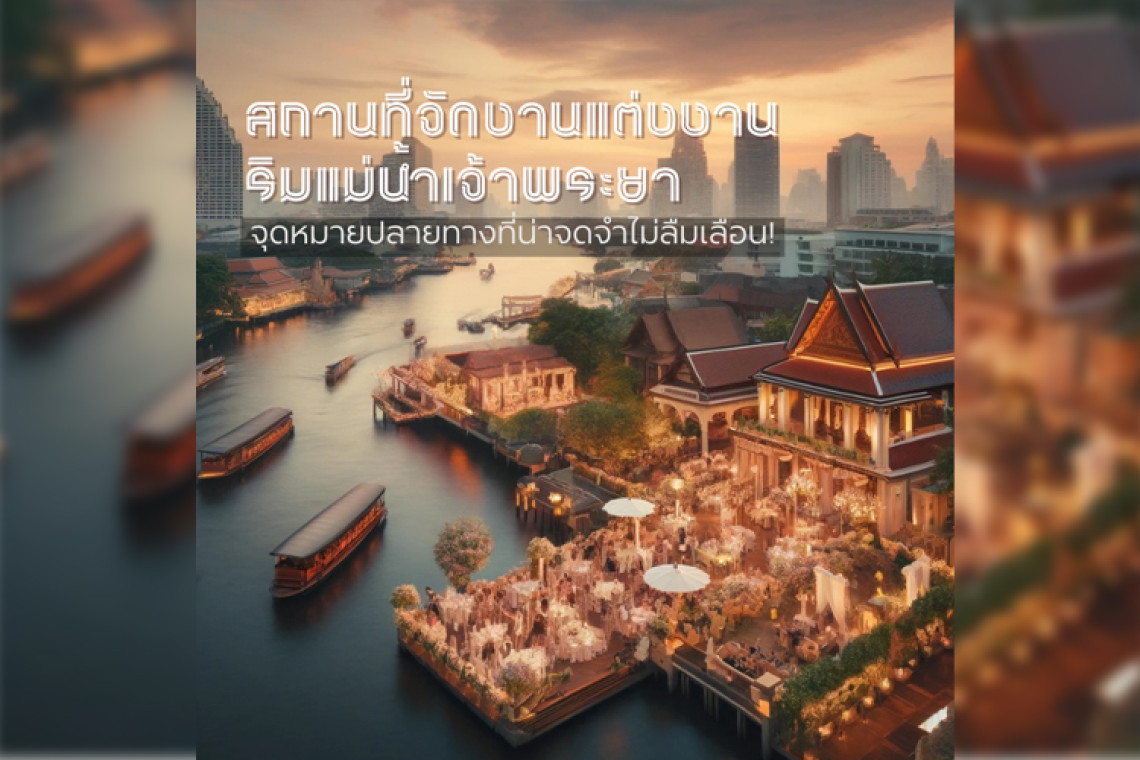 สถานที่แต่งงานริมแม่น้ำเจ้าพระยาในกรุงเทพฯ แต่ละแห่งมอบเวทีสุดพิเศษสำหรับวันสำคัญแห่งความรัก สามารถผสมผสานความมั่งคั่งทางวัฒนธรรมของไทยให้ตอบโจทย์ความต้องการงานแต่งงานที่ทันสมัย มอบทางเลือกมากมายสำหรับคู่รักในการเริ่มต้นการเดินทางด้วยกันที่นิรันดร์
