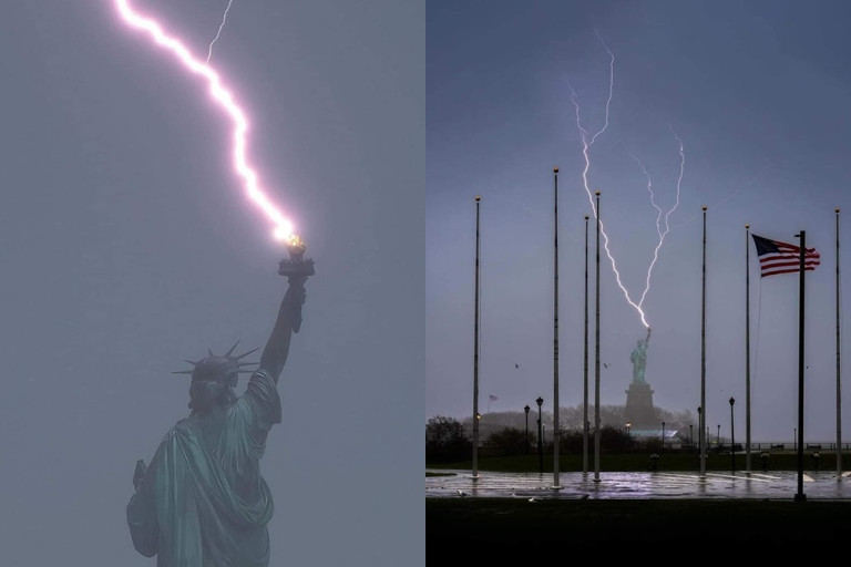 กลายเป็นภาพไวรัลที่แชร์สนั่นในโลกออนไลน์ เมื่อ เพจ World Forum ข่าวสารต่างประเทศ ได้โพสต์ภาพของช่างภาพรายหนึ่ง ซึ่งบันทึกภาพขณะฟ้าผ่าลงคบเพลิง "เทพีเสรีภาพ"ขณะเกิดพายุฝน ที่เมืองนิวยอร์ก สหรัฐอเมริกา โดยภาพดังกล่าวได้โพสต์ในวันที่ 4 เมษายนที่ผ่านมา