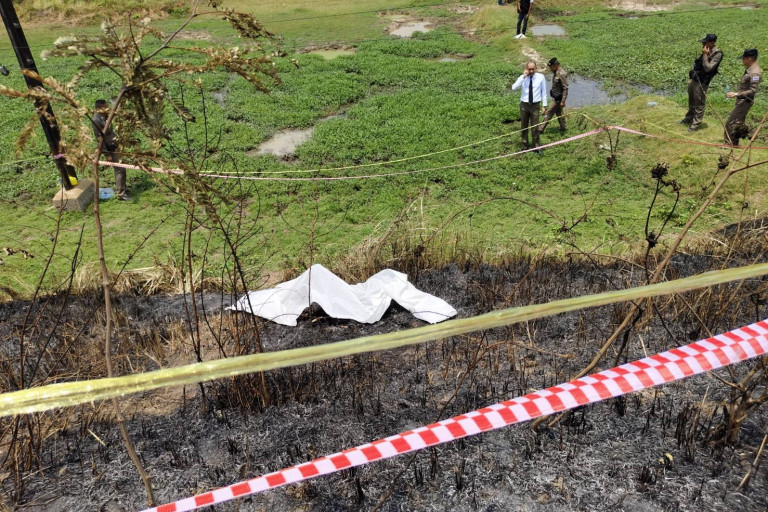 พบศพ ชาย นอนเสียชีวิตถูกไฟไหม้ดำเป็นตอตะโก สภาพศพนอนหงายท้อง ไม่พบหลักฐานอะไรทิ้งเอาไว้เลย จาการตรวจสอบเสียชีวิตมาแล้วไม่ต่ำกว่า 2 วัน เนื่องจากว่าสภาพศพถูกไฟไหม้ตัวเกรียมไปหมดและไม่พบหลักฐานอะไรทิ้งเอาไว้ในที่เกิดเหตุแม้แต่ชิ้นเดียวและลักษณะไฟที่ยังไหม้ไม่หมดมองเห็นสภาพก้อนเนื้อที่ติดกับสะโพกที่หลงเหลืออยู่
