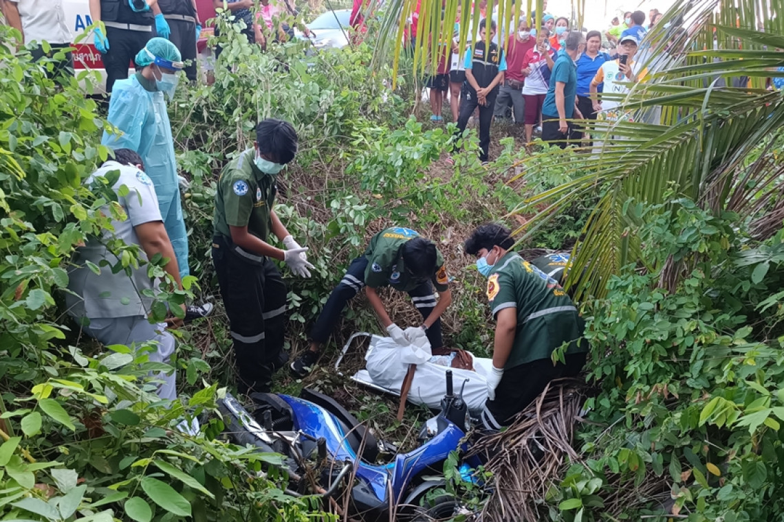 เมื่อเวลา 17.30 น.วันที่ 5 เมษายน 2567 พนักงานสอบสวนเวร สภ.เมืองพังงา ได้รับแจ้งจากเจ้าหน้าที่โรงพยาบาลทับปุดว่า ได้พบศพนายไชยวรรณ อายุ 56 ปี ชาวอำเภอเมืองพังงา ทำงานเป็นเจ้าหน้าที่ช่วยเหลือคนไข้โรงพยาบาลทับปุด อ.ทับปุด จ.พังงา ซึ่งทางครอบครัวได้ตามหาหลังจากขับรถมอเตอร์ไซค์ออกจากบ้านในอำเภอเมืองพังงาไปทำงานที่โรงพยาบาลทับปุดในช่วงหัวรุ่งวานนี้(4 เมษายน) จากนั้นญาติก็ติดต่อไม่ได้ โทรศัพท์หาก็ติดแต่ไม่รับสาย จึงแจ้งไปยังที่ทำงาน ซึ่งพบว่าไม่ได้เข้าทำงานด้วยเช่นกัน เมื่อเลิกงานทางหัวหน้างานและเพื่อนร่วมงานก็ช่วยกันออกตามหาและในที่สุดในช่วงเย็นวันนี้ก็พบศพ ที่ริมถนนสายเมืองพังงา-ทับปุด บริเวณใกล้ทางเข้าวัดเขาม่วง ต.บางเตย อ.เมืองพังงา โดยพบศพพร้อมกับรถมอเตอรืไซค์ฮอนด้าสีน้ำเงิน หมายเลขทะเบียน 1 กจ xxxx พง เริ่มส่งกลิ่นเหม็นคละคลุ้ง