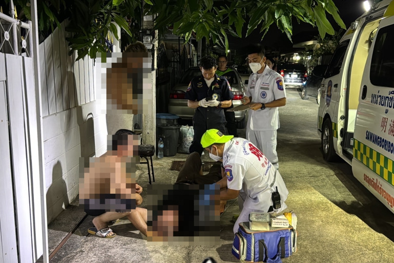 วันที่ 7 เมษายน 2567 เวลา 00.15 น เจ้าหน้าที่ กู้ภัยมูลนิธิสว่าง บริบูรณ์ธรรมสถานเมืองพัทยา ได้รับแจ้งเหตุ ชาวต่างชาติ ถูก เหล็กแหลมรั้วประตูบ้าน แทงบริเวณท้อง ได้รับบาดเจ็บ เหตุเกิดที่หมู่บ้านในซ.วัดบุญสัมพันธุ์ หมู่ 10 ต.หนองปรือ อ.บางละมุง จ.ชลบุรี หลังรับแจ้งจึงรีบนำกำลังเจ้าหน้าที่กู้ภัยฯรีบไปตรวจสอบ