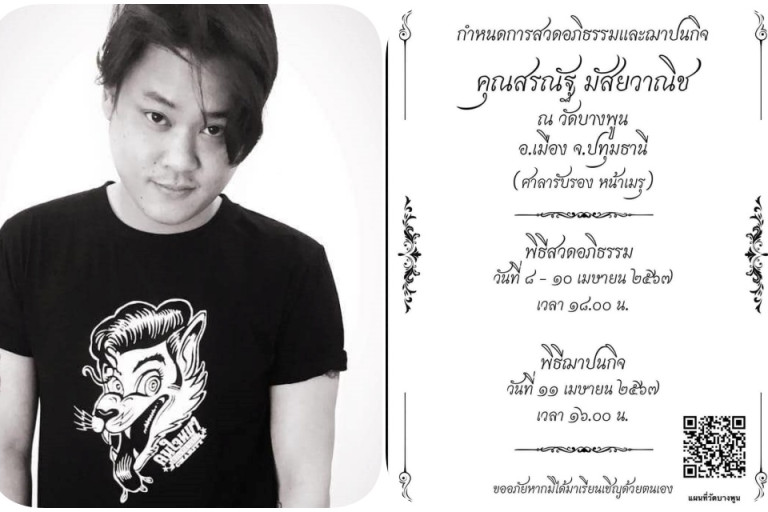 #พิธีฌาปนกิจ วันที่ 11 เมษายน เวลา16.09 น ณ เมรุวัดบางพูน
