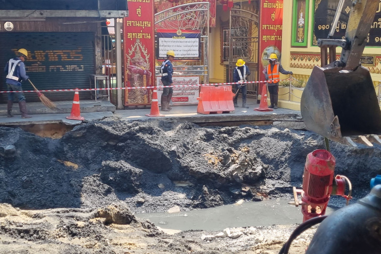 ปัญหาที่เรากลัวคือเพื่อจะไม่ให้เกิดปัญหาเหล่านี้ซ้ำอีก ทั้งเรื่องน้ำเซาะ น้ำรั่วต้องเคลียร์ให้จบ เราจึงจะบดอัดและถมพื้นที่ได้ไม่งั้นจะพังและต้องขุดใหม่อีก งานก็จะเป็นเหมือนเดิมและทรุดอีกภายหลัง การทำงานร่วมกันจะมีการประปานครหลวง เรื่องท่อระบายน้ำหรือส่วนที่การไฟฟ้านครหลวงทำเสียหายจะทำการซ่อมใหม่ให้เหมือนเดิม ในส่วนของวัดบ่อตอนนี้ลักษณะการทรุดตัวไม่ได้ลึกมาก เป็นแค่ผิว ความเสียหายจะเป็นช่วงทางเดิน รั้วต่างๆ ส่วนโครงสร้างอาคารไม่ได้รับความเสียหาย ตนต้องขออภัยกับประชาชนในเขตเทศบาลนครปากเกร็ดที่ได้รับผลกระทบ ทำให้เกิดความไม่สะดวก ในส่วนของการไฟฟ้านครหลวงจะดูแลและรับผิดชอบ ขอให้มั่นใจได้ว่าเราไม่ได้นิ่งนอนใจ จะดูแลและรับผิดชอบ ทำให้กลับมาสภาพเดิมโดยเร็วตามมาตรฐาน