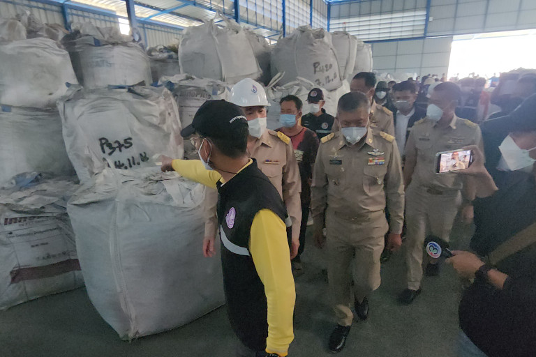 ซึ่งเบื้องต้นทางเจ้าของโกดังบอกว่า ได้ส่งไปให้มิสเตอร์จาง ที่ถูกจับกุมได้เมื่อวันอาทิตย์ที่ผ่านมา เพราะฉะนั้นในเรื่องของตัวเลขน้ำหนักโดยรวมของกากแร่แคดเมียมล็อตนี้ทั้งหมด ถ้าเราดูยอดการขนส่งจากจังหวัดตากถึงโรงงาน จ.สมุทรสาคร ตามที่ระบุไว้ประมาณ 13,800 ตัน ตอนนี้ยอดรวมจากการประเมินที่ถูกตรวจพบแล้วทุกที่นั้น ก็ยังคงเหลือที่ต้องตามหาอีกราวๆ 4,900 ตัน โดยจะต้องมีการขยายผลไปเรื่อยๆ เพื่อตามหาส่วนที่ขาดหายไปกลับมาให้ได้ครบตามจำนวนที่เป็นจริง ทั้งนี้ก็จะต้องมุ่งไปทั้งสถานที่กักเก็บหรือโรงงาน ที่จะนำสินค้าไปกักเก็บไว้ รวมถึงจุดขนส่งสินค้าทางเรือ  ก็มีทั้งท่าเรือกรุงเทพฯ กับ ท่าเรือแหลมฉบัง จ.ชลบุรี ล้วนเป็นพื้นที่เป้าหมายที่ต้องทำการขยายผลสืบสวนทั้งสิ้น